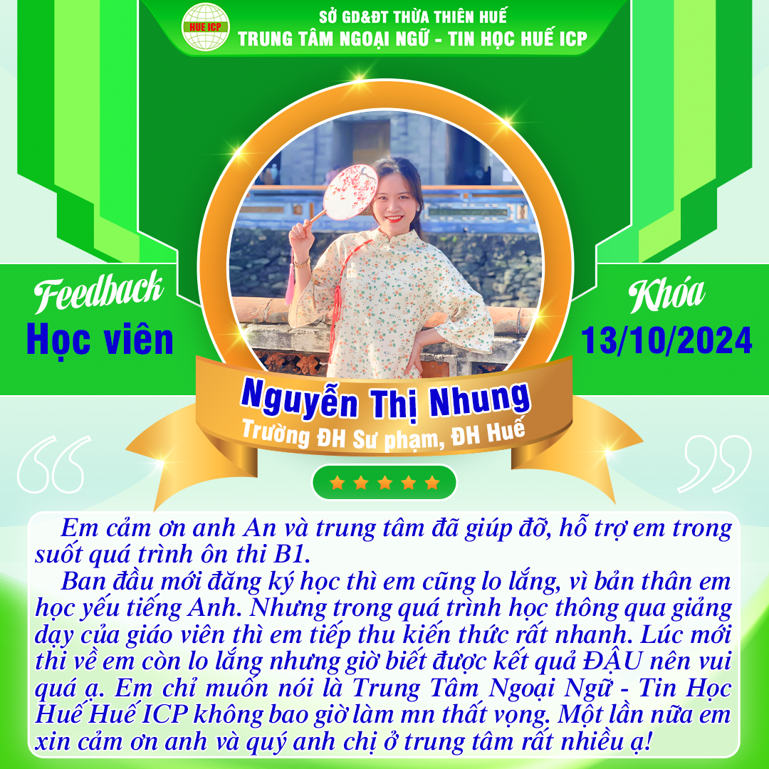 ️🏆️🎓🏆 Huế ICP – Nơi khẳng định thành công của bạn qua từng phản hồi thực tế từ học viên!