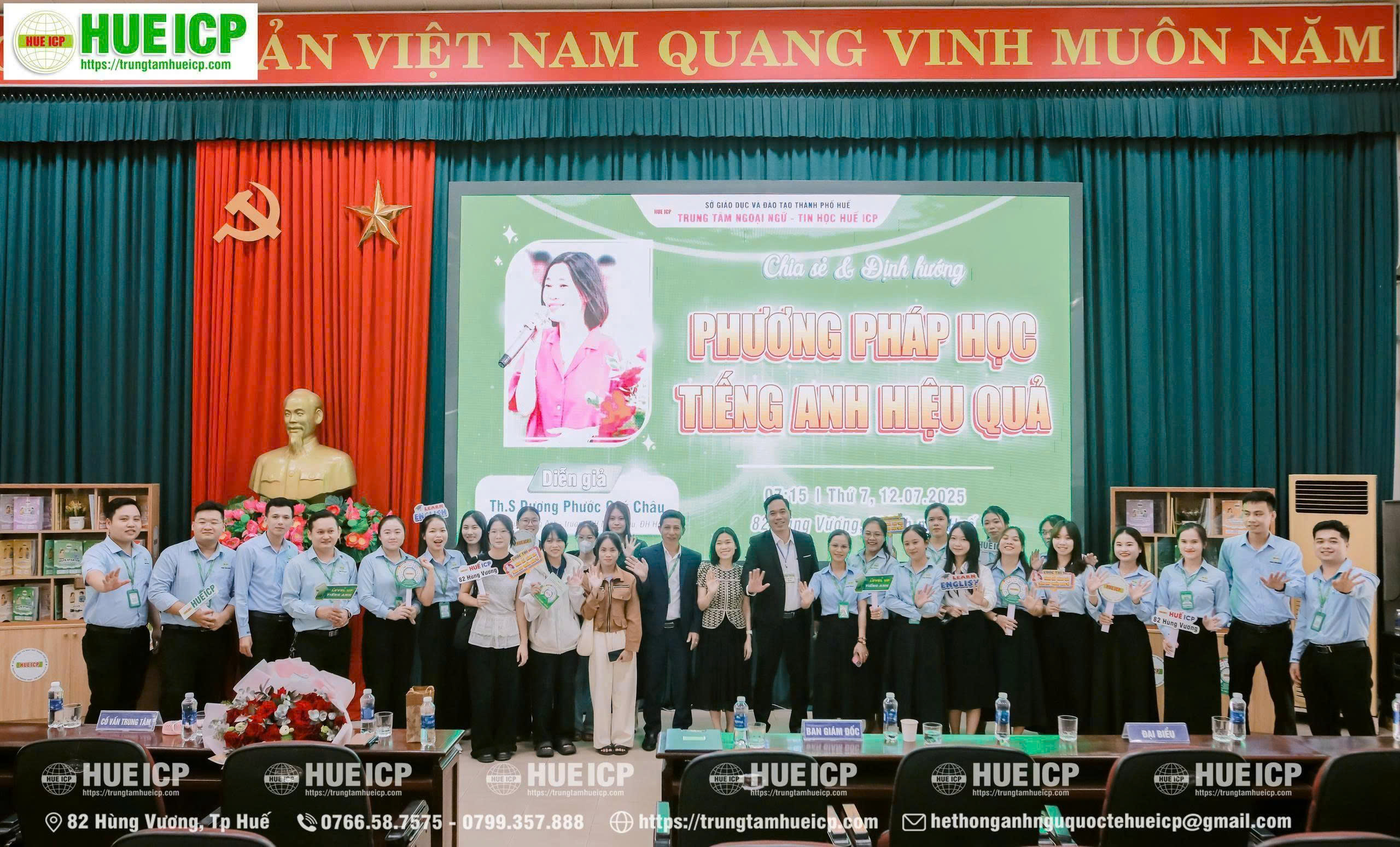 ✨ Sáng ngày 12/07/2025, song song với kỳ thi Đánh giá năng lực tiếng Anh theo chuẩn quốc tế, Trung tâm Ngoại ngữ – Tin học Huế ICP đã tổ chức buổi chia sẻ và định hướng học tập với chủ đề: “Phương pháp học tiếng Anh hiệu quả”.