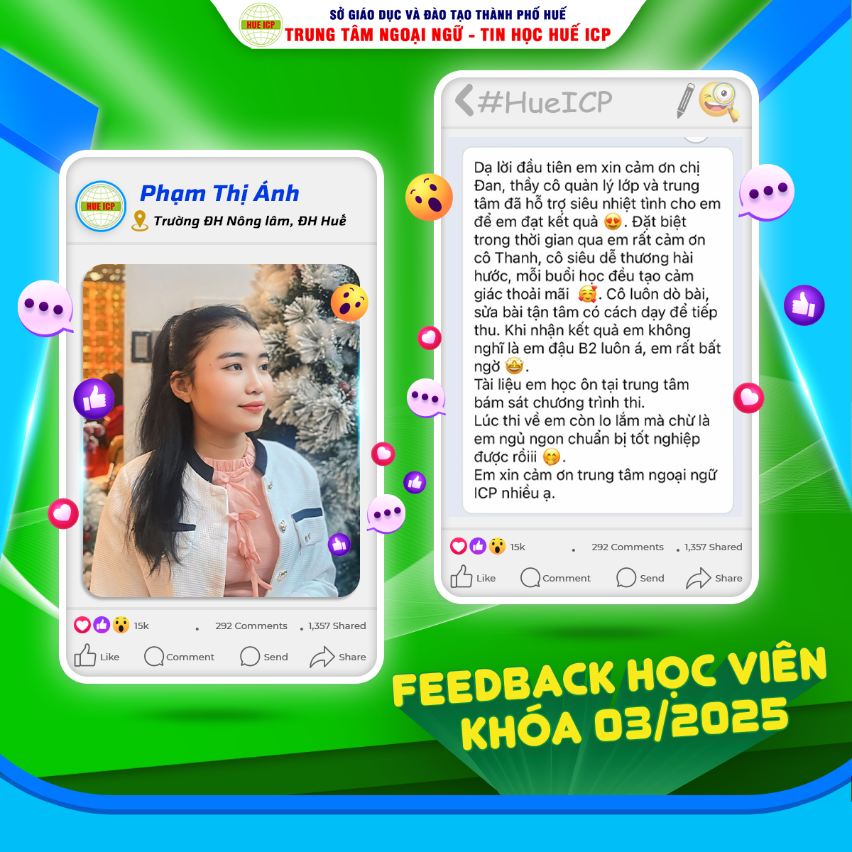🔹 ✨ “Cảm ơn ICP đã đồng hành cùng em trong suốt hành trình chinh phục B1! Nhờ vào phương pháp giảng dạy bài bản và đội ngũ giáo viên tận tâm, em đã đạt được điểm số ngoài mong đợi!” 👏👏