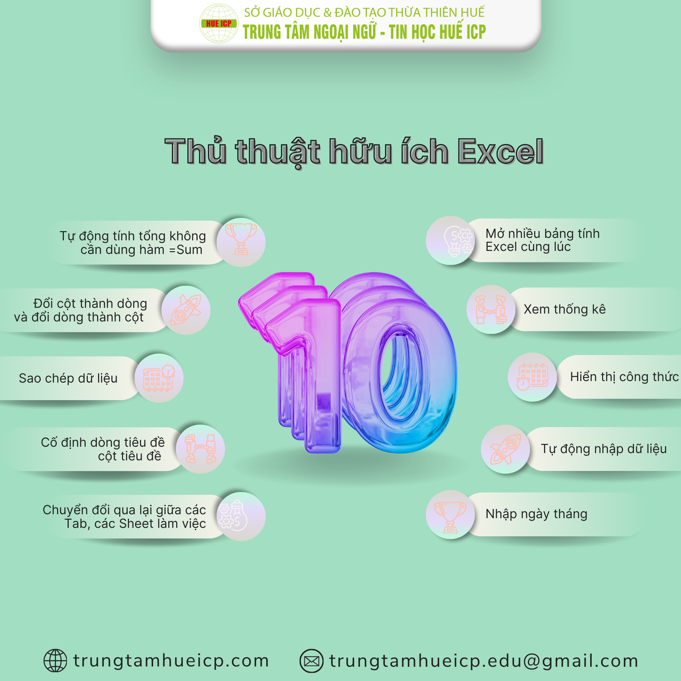 📣 Chào mọi người! Bạn có biết rằng Excel là một công cụ mạnh mẽ để xử lý dữ liệu và tạo ra bảng tính chuyên nghiệp? Hôm nay, chúng tôi sẽ chia sẻ với bạn 10 thủ thuật Excel hữu ích, giúp bạn làm việc hiệu quả và tiết kiệm thời gian!