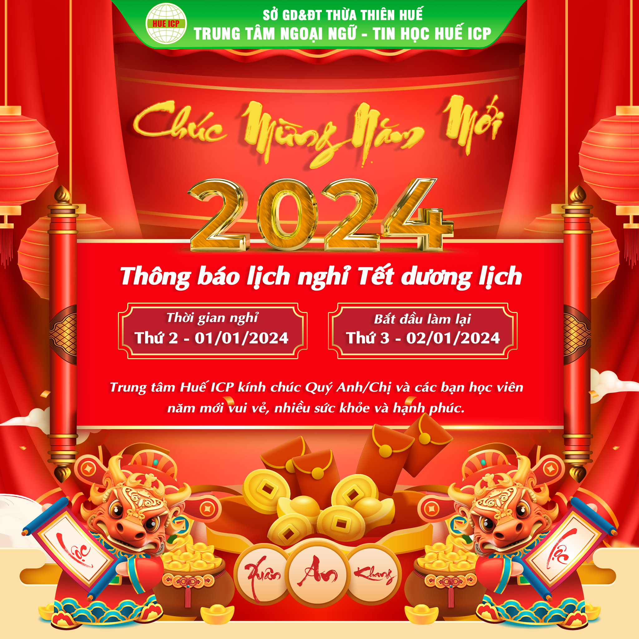 📣📣 Trung tâm Huế ICP xin thông báo lịch nghỉ tết dương lịch 2024:📣📣