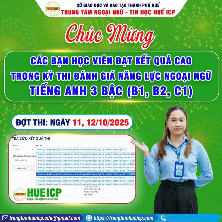 HUẾ ICP TỔ CHỨC KỲ THI ĐÁNH GIÁ NĂNG LỰC TIẾNG ANH THEO CHUẨN QUỐC TẾ – NGÀY 21.09.2025 Chiều ngày 21/09/2025, Trung tâm Ngoại ngữ – Tin học Huế ICP đã tổ chức kỳ thi đánh giá năng lực…