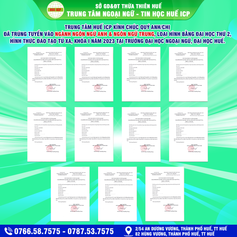 TRUNG TÂM HUẾ ICP KÍNH CHÚC QUÝ ANH/CHỊ NGÀNH NGÔN NGỮ ANH & NGÔN NGỮ TRUNG QUỐC, LOẠI HÌNH BẰNG ĐẠI HỌC THỨ 2