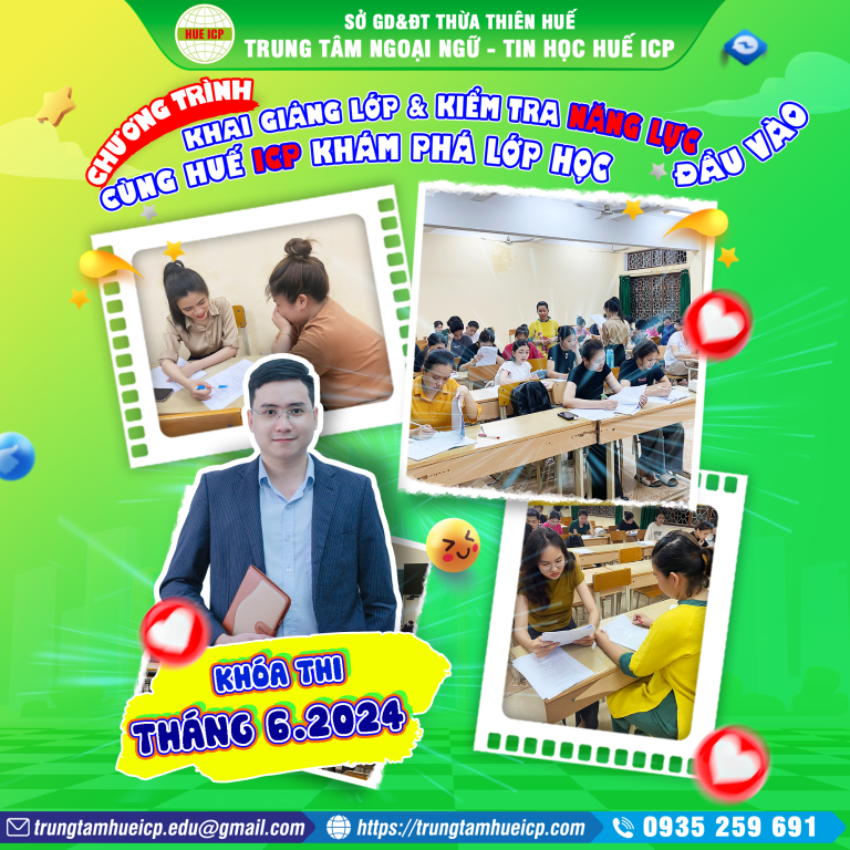 Khai Giảng Lớp & Kiểm Tra Năng Lực Tiếng Anh B1 Khóa Thi Tháng 6.2024! Vào tối 20/05/2024, Trung tâm Huế ICP đã chính thức khai giảng lớp luyện thi Tiếng Anh B1 cho kỳ thi khóa tháng 6, mang…